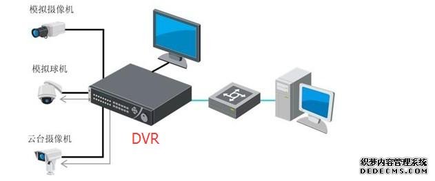 一套模擬監控系統主要是由前端模擬攝像頭,線纜(電纜、同軸視頻線),DVR以及顯示設備組成,DVR是整個系統的核心,除了具備編碼壓縮和存儲功能外,同時還具備一定的解碼功能。不得不說模擬監控系統中,采用DVR既做存儲又做解碼,這種方案是最省成本的,但同時有不少限制,比如畫面控制很麻煩,需要鼠標接線到DVR設備,然后實現拖動和切換畫面,非常麻煩,而且自由度不高,不能隨意拖動監控視頻畫面。