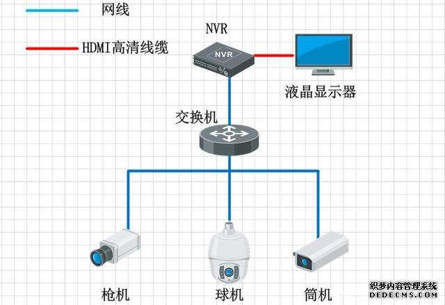 在到了IPC的年代,NVR出現了,這也標志模擬監控系統過渡到了數字監控系統,前端IPC編碼,通過交換機傳輸到NVR,NVR除了具備存儲功能外,還具備一定的上墻解碼能力,從技術上來說,通過網絡控制的NVR比DVR更自由些,NVR存放位置擺脫了傳統DVR對同軸線纜的束縛,理論上NVR可以放置在任何一個角落,只要網絡接通就行。